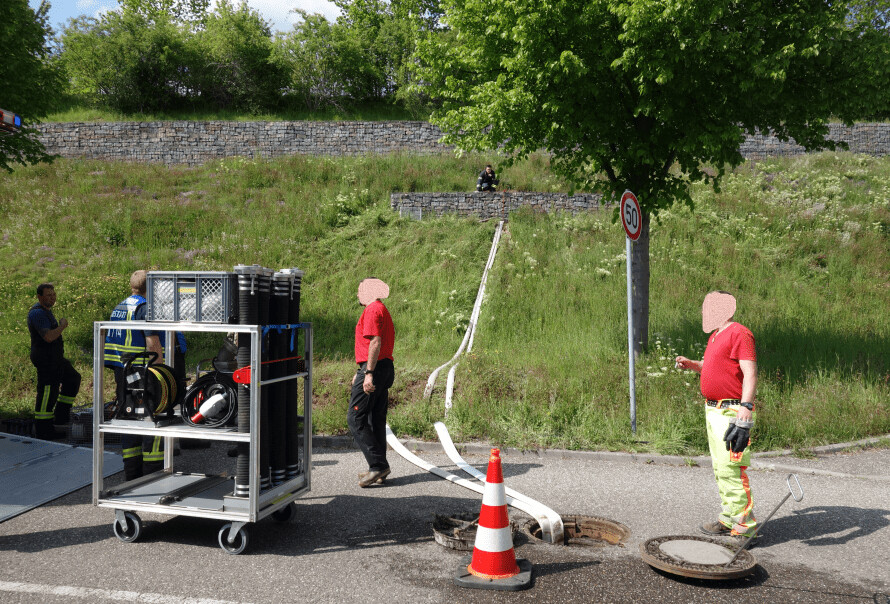 Die Feuerwehr Abstatt wurde am 17.05.2019 um 14:58 Uhr durch den Werkschutz der Robert-Bosch GmbH in die Rudolf-Diesel-Straße nach Abstatt alarmiert. Am Einsatzort wurden aus einem Schacht ausströmende Fäkalien festgestellt. Um eine Verschmutzung der öffentlichen Gewässer zu verhindern, wurde mit einer Tauchpumpe 15/1 das Abwasser aus dem überlaufenden Schacht in den nächsten zugänglichen Schacht der Kanalisation gepumpt. Dies wurde bis zum Eintreffen der Kanalreinigung aufrecht erhalten. Die Kanalreinigung hat eine massive Verstopfung des Kanals festgestellt und konnte diese beseitigen. Nach spülen des Kanals konnte die Feuerwehr Abstatt den Einsatz beenden.