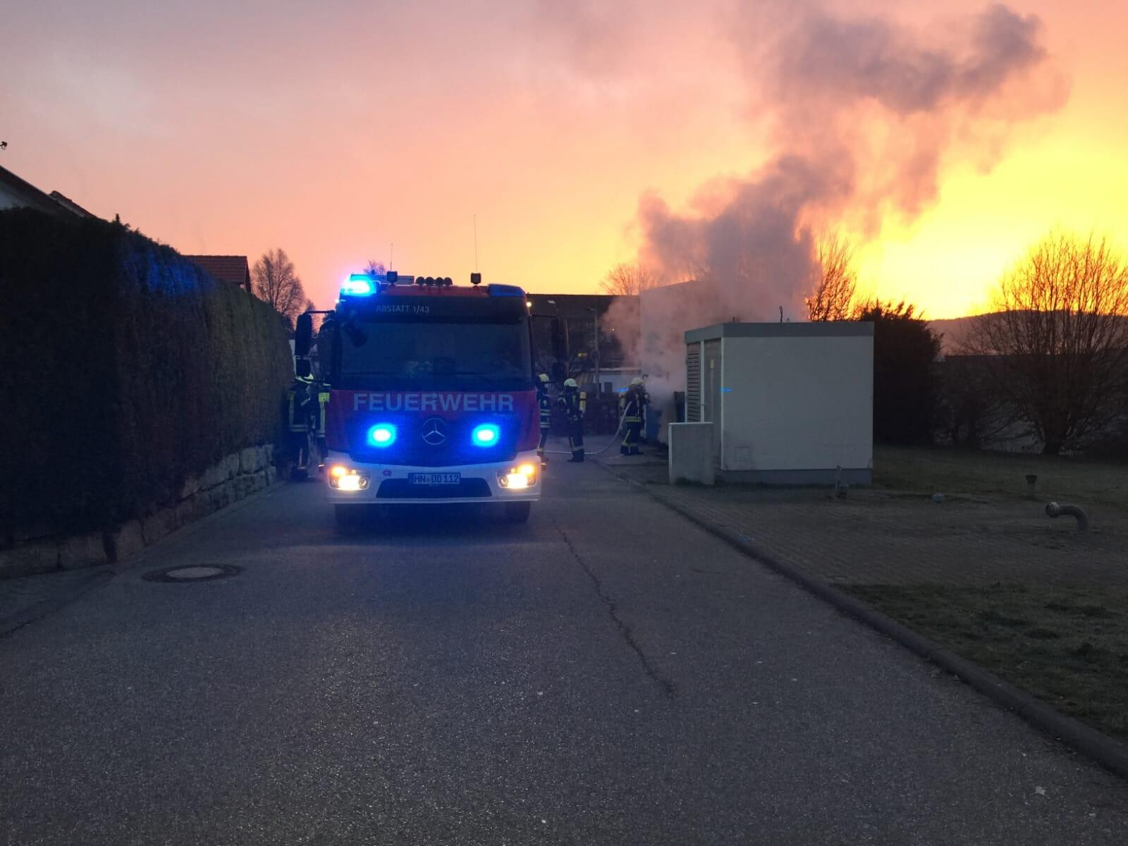 Die Feuerwehr Abstatt wurde am 03.03.2021 um 06:48 Uhr in den Pappelweg nach Abstatt alarmiert. Laut Anrufer stieg dort aus mehreren öffentlichen Papiercontainer Rauch auf.