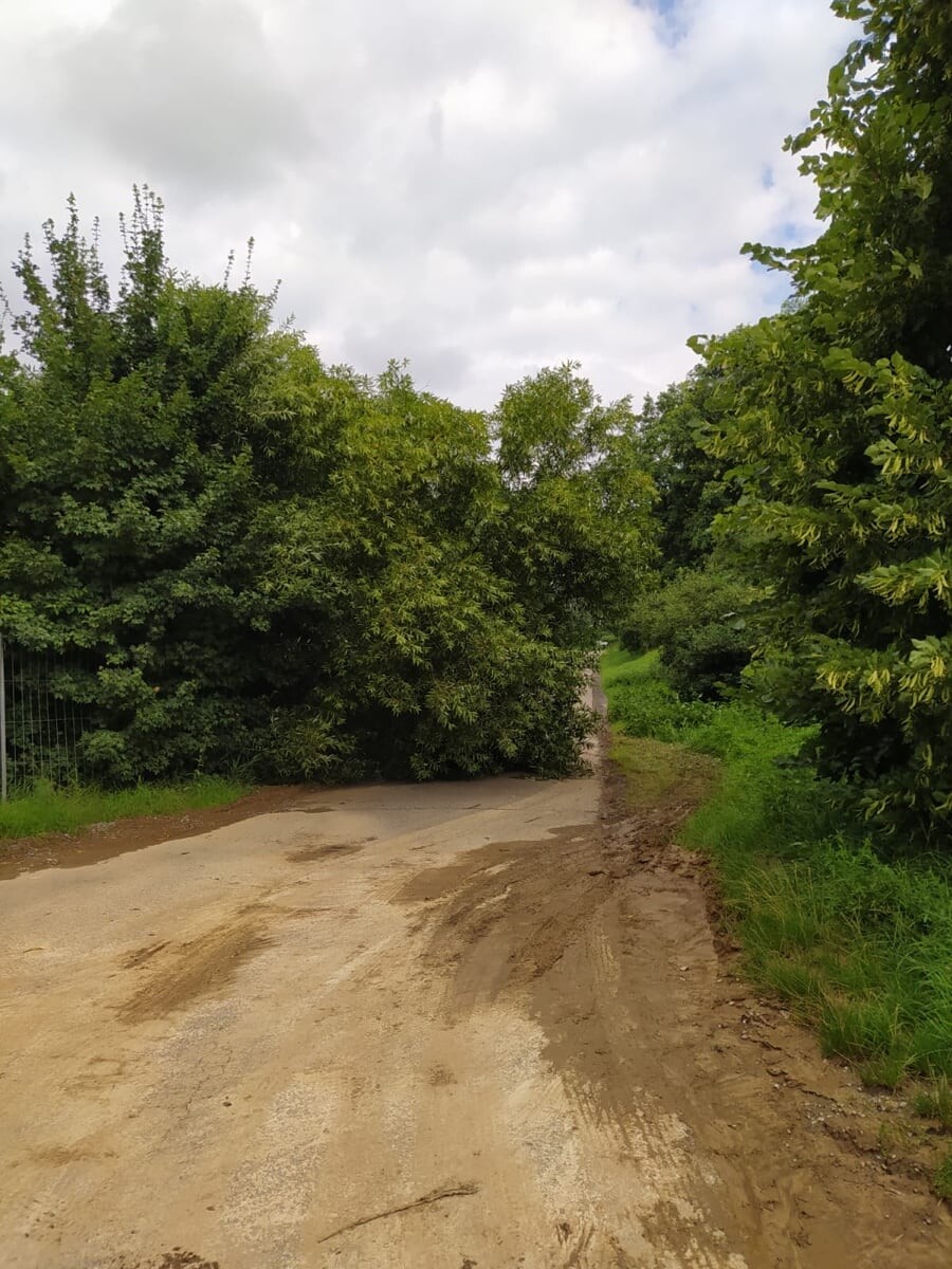 Die Lageerkundung durch den KdoW ergab einen großen Baum, der durch den Sturm umgestürzt ist und den Hohbuchweg komplett blockierte.