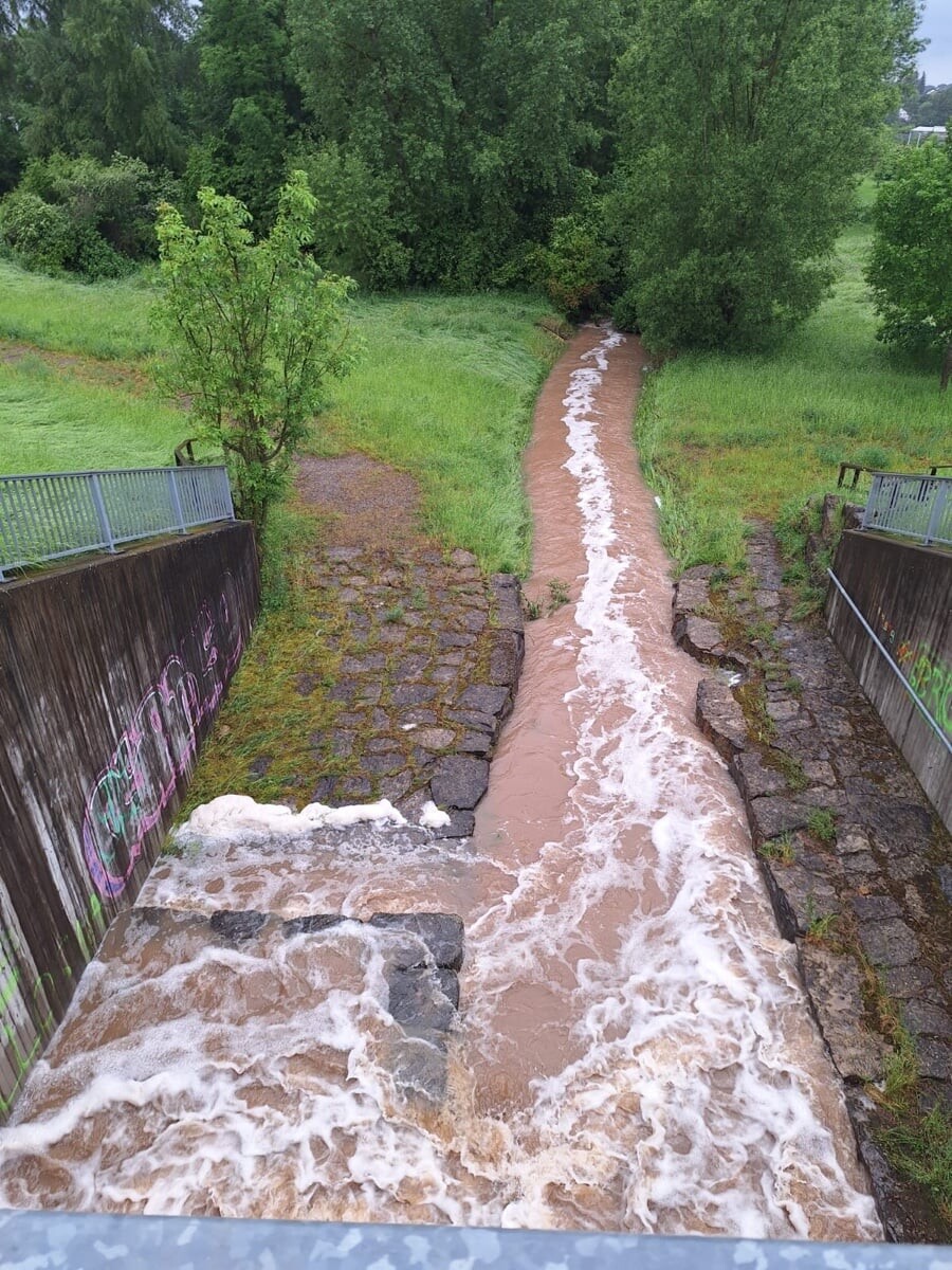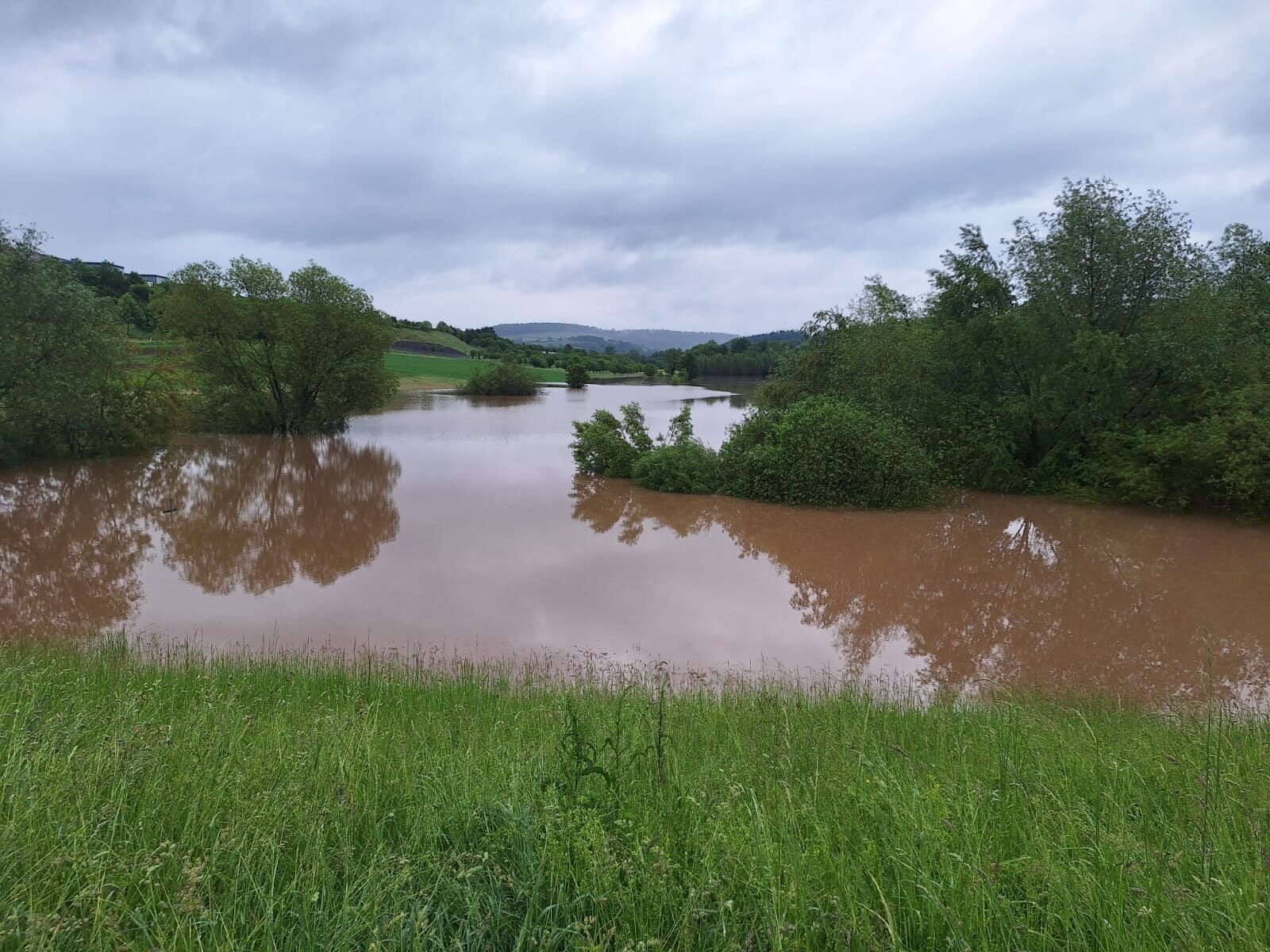 Aufgrund des langanhaltenden Regens waren einige Becken des Zweckverband Hochwasserschutz in Einstau gegangen. Nun waren einzelne Becken kurz davor komplett gefüllt zu sein. Nun galt es die Pegel zu beobachten und die Becken so gut es ging zu entlasten, ohne dabei andere Anlieger zu gefährden. Hierzu wurden Maßnahmen abgestimmt und geplant, sowie Pegelstände kontrolliert.