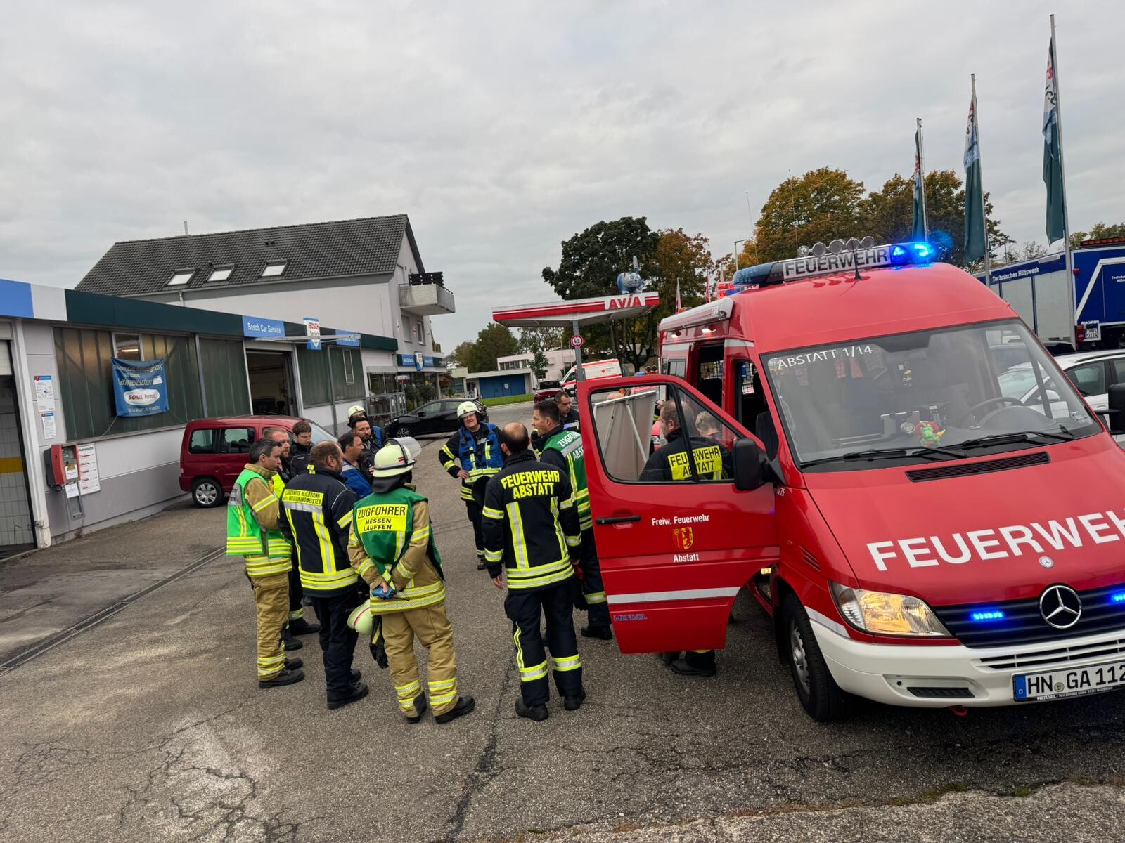 - Die Feuerwehr Abstatt war mit 6 Fahrzeugen und 29 Personen im Einsatz, mehrere Personen befanden sich auf Bereitschaft im Feuerwehrhaus.