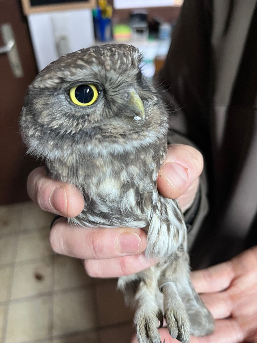 Nach telefonischer Rücksprache mit der Greifvogelpflegestation des NABU in Bad Friedrichshall wurde beschlossen den Steinkautz zur weiteren Untersuchung und Verpflegung dort ab zu geben.