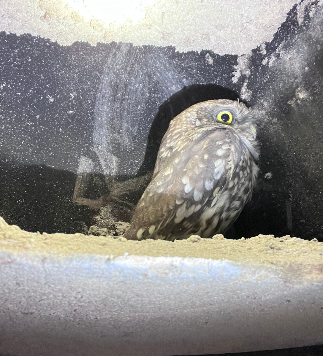 Bei Eintreffen der Feuerwehr war die Lage unverändert. Mit einer Kamera wurde der Brennraum untersucht, der Steinkautz konnte im oberen Bereich der Brennkammer vorgefunden werden und wurde ohne Gegenwehr gefangen. Er wurde in die Tiertransportbox der Feuerwehr gesetzt.