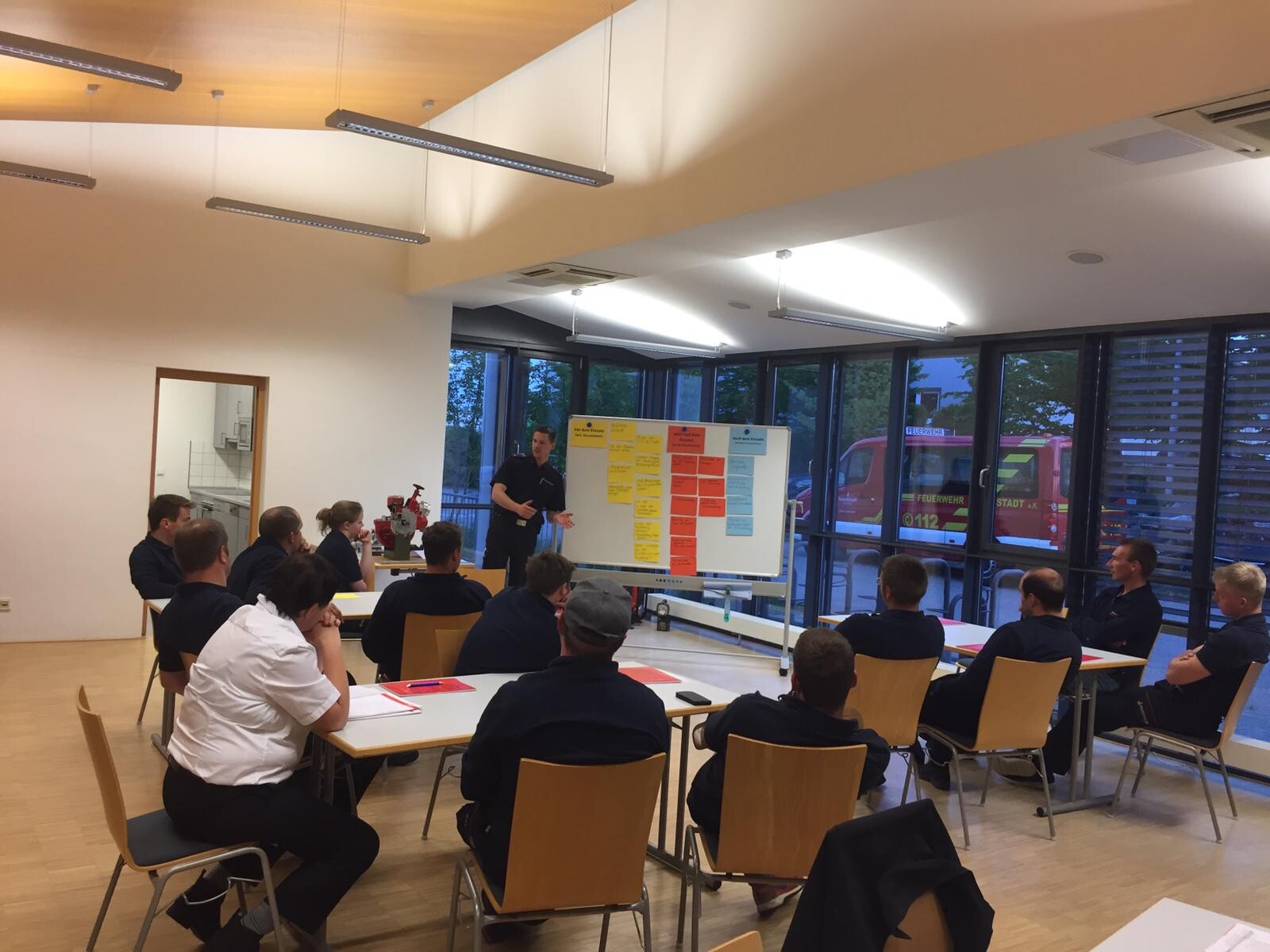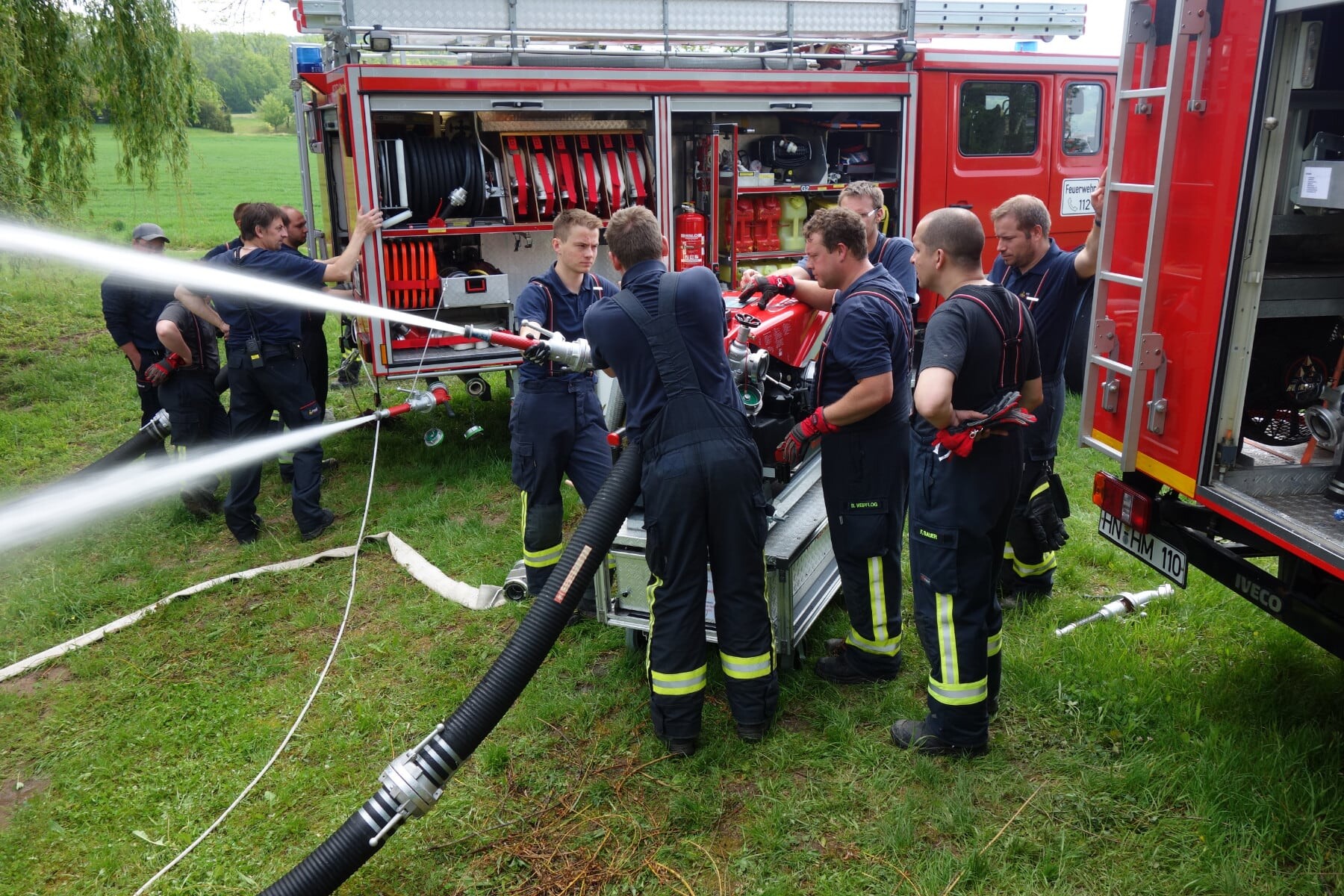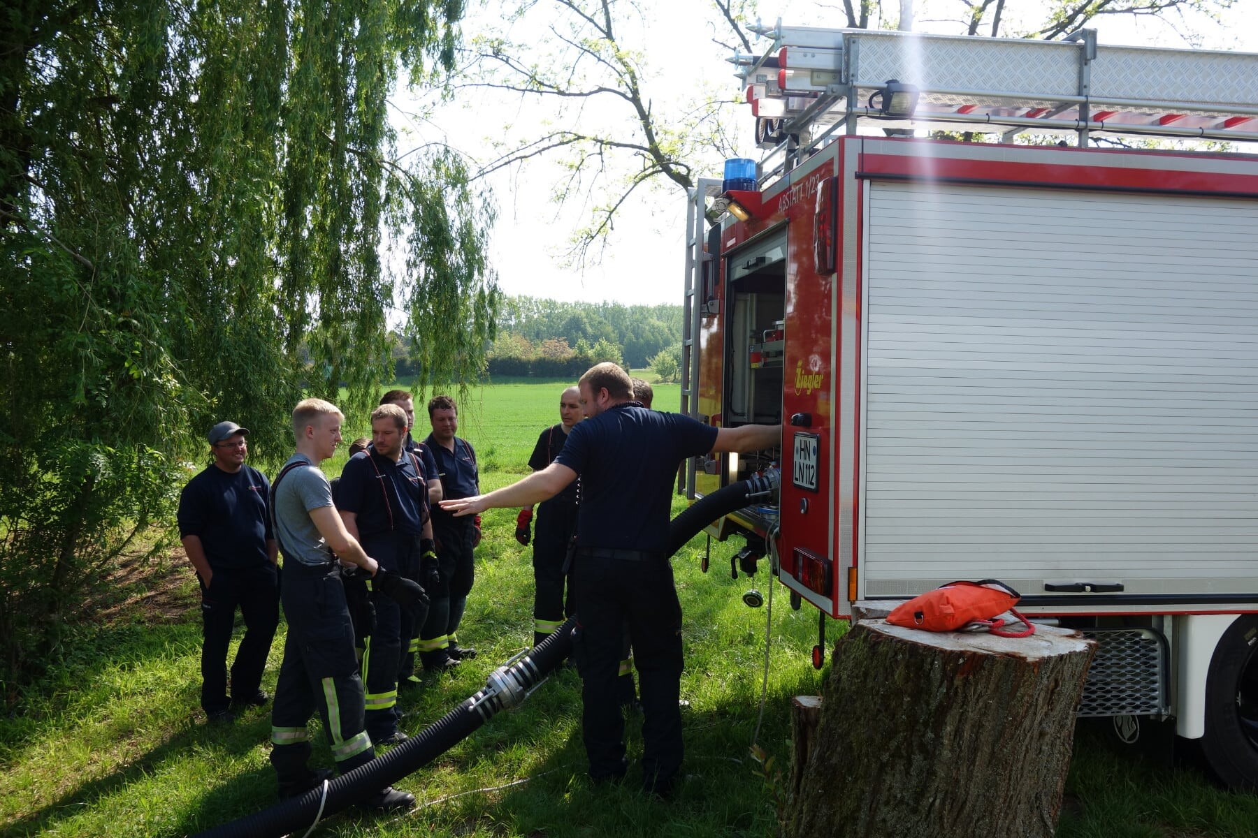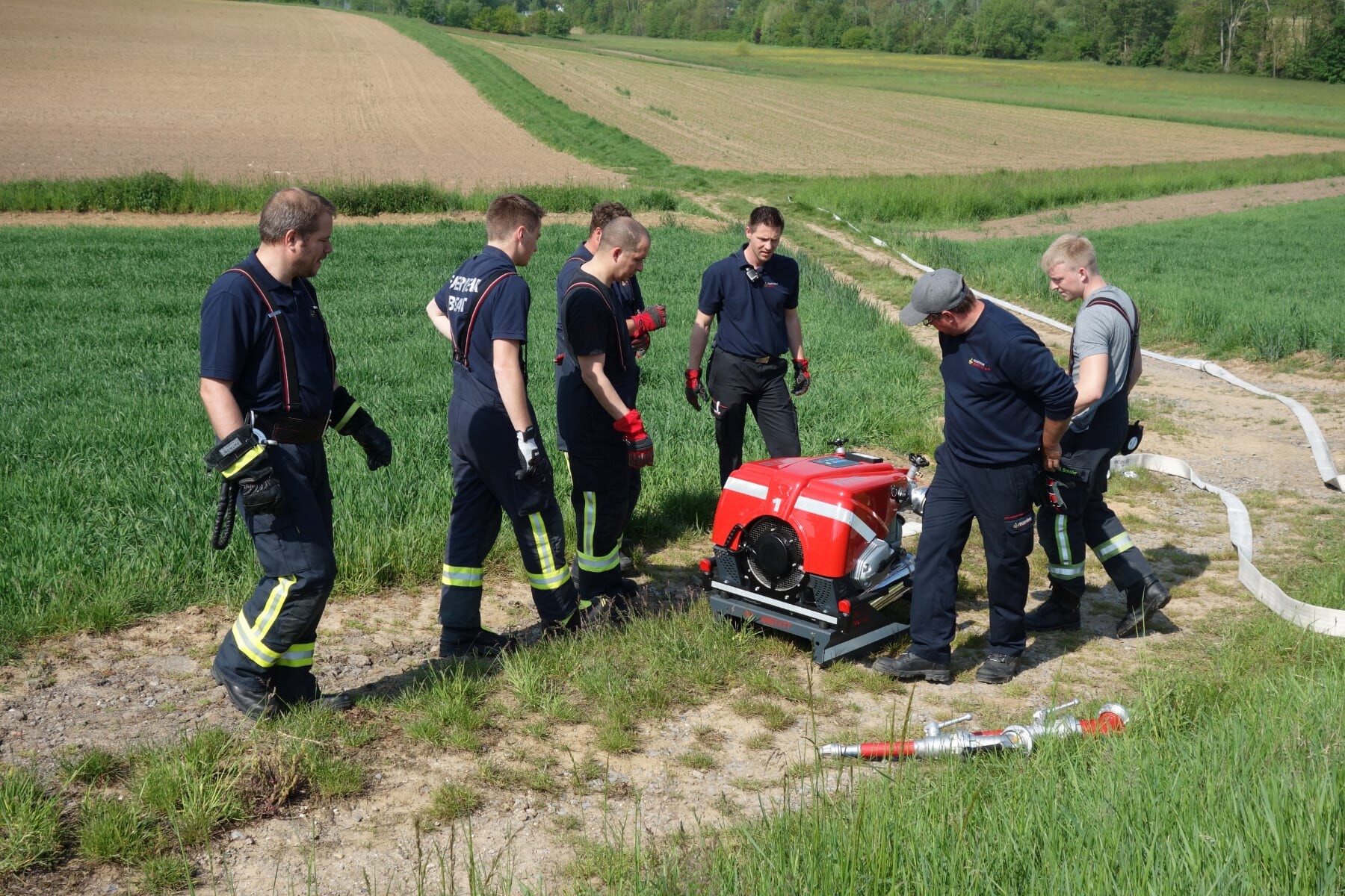 In insgesamt 35 Unterrichtseinheiten wurden die Teilnehmerinnen und Teilnehmer ausgebildet zum Bedienen maschinell angetriebener Einrichtung (mit Ausnahme von maschinellen Zugeinrichtungen) und sonstiger auf Löschfahrzeugen mitgeführten Geräten sowie die Vermittlung von Kenntnissen und richtiger Verhaltensweisen, die für die Durchführung von Einsatzfahrten unter Inanspruchnahme von Sonderrechten erforderlich sind.