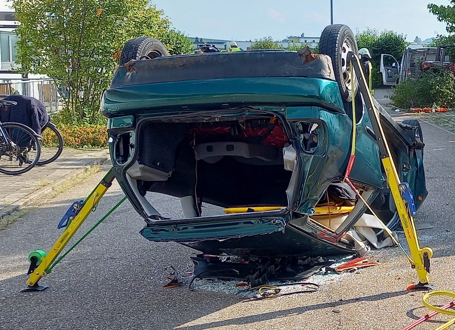 Begonnen hat der Tag mit einer Theorie-Einheit, die allen nochmals die Rettungsgrundsätze und das Vorgehen bei einem Technischen-Hilfeeinsatz näherbrachte. Es wurde Fahrzeugtechnik, Rettungstechniken und -taktiken, die Standard-Einsatz-Regeln, Lageerkundung, Öffnungstechniken, Sichern und Stabilisieren sowie Gerätetechnik geschult.